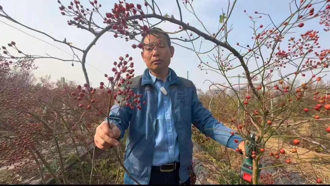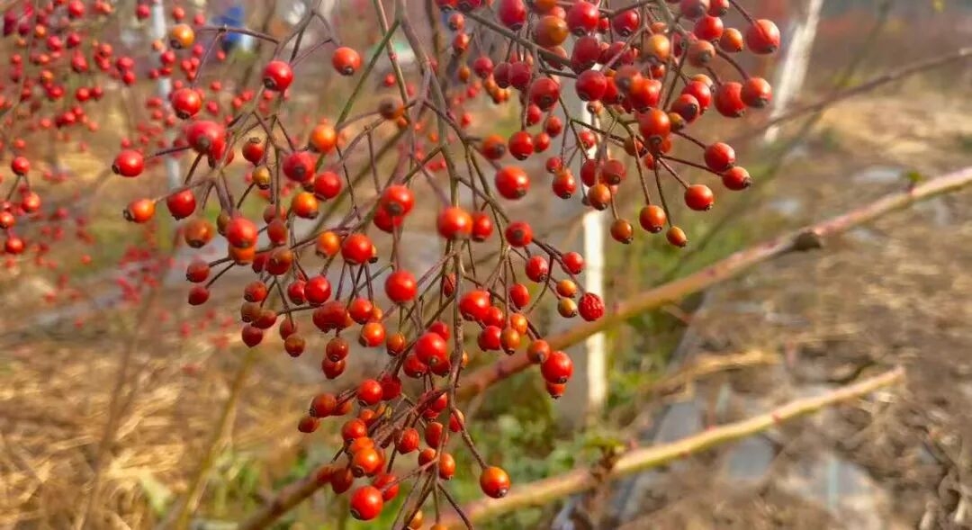 冬日暖阳下,东刘庄村的花圃里,果玫瑰迎来了最后的采收。玫瑰红的果实如宝石般点缀枝头,村民郭海燕动作娴熟地修剪、捆扎。几年前,她还守着自家的菜园,如今已是这片特色花圃的行家里手。这源于一场深刻的绿色转型。这片果玫瑰种植园是东刘庄村科技小院重点引进的特色种植项目。作为一种聚花结果的花卉品种,果玫瑰的果枝既可以作为鲜切枝观赏,又可以做成干花,非常适合节日插花、装饰使用,在欧洲十分受追捧。这样的鲜切果枝不仅供应国内北方市场,插到花瓶里,它花期大概能保持6个月,不像鲜花,大概一星期左右就谢掉了。还出口至荷兰等欧洲国家,预计年销售5万—6万枝,年产值可达5万元—10万元。