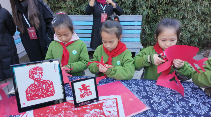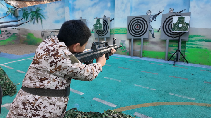 在小讲解员的引领下,嘉宾们参观了学校“动静结合”的国防教育实践活动。操场上,同学们踊跃参与各类军事体能游戏,“战场支援行动”“运送军粮”“极速障碍突围战”等项目紧张有序。另一侧的打靶和投壶区域,孩子们凝神静气,全情投入。师生们还自主创编了《快乐国防棋》《手绘社会主义核心价值观拼图》《红色印记“趣”游学》等“静态”国防游戏,以寓教于乐的方式深化国防认知。