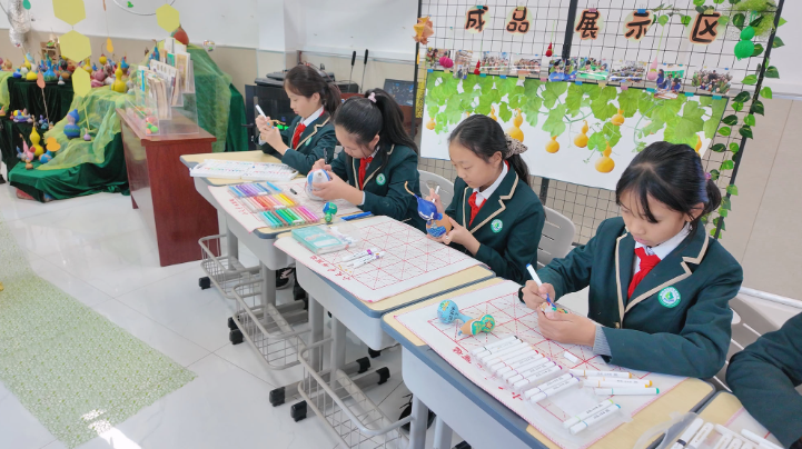 社团活动同样是学校国防教育的重要阵地。凌空社团致力于探索航模飞行技术;迷彩社团专注于军事模型的精细制作;而在葫芦社团,孩子们种葫芦,在葫芦上绘制国防英雄等图案,巧妙地将国防教育融入劳动与美育之中。