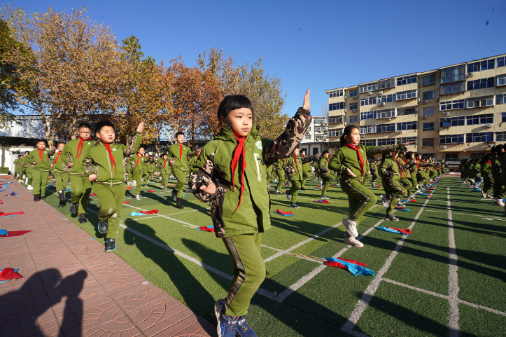 石家庄市华夏小学作为全国中小学国防教育示范学校,探索打造“快乐国防”育人体系。通过旗语操《强国有我》、军体拳《少年中国说》展现少年朝气;开展“战场支援行动”等军事游戏与《快乐国防棋》等静态活动,实现“动静结合”;依托国防成就展厅与VR战斗机模拟舱,激发空天报国志向;依托凌空、迷彩、葫芦等社团,融合劳动美育深化国防教育,让学生在快乐中强健体魄、培塑品格。