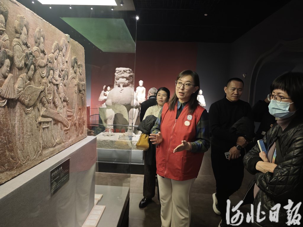 12月5日,河北博物院志愿者讲解员马楠在“曲阳石雕”展厅讲解。河北日报记者 史晓多摄
