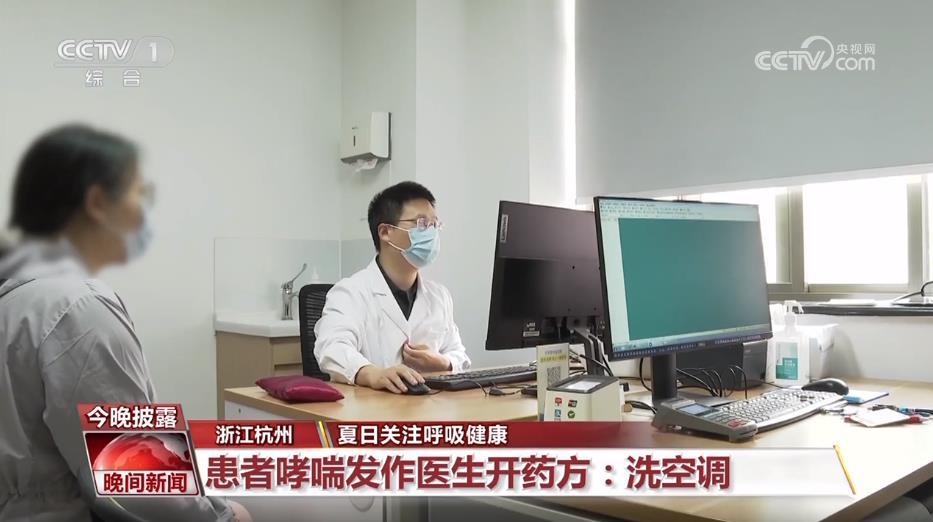 浙江中医药大学第二附属医院呼吸与危重症医学科副主任 陈晔:很多的哮喘病人在夏天发作都有一个原因,就是室内的空调(使用不当),一个是冷空气的刺激,一个是空调长期不用以后就会有很多的病原学微生物。