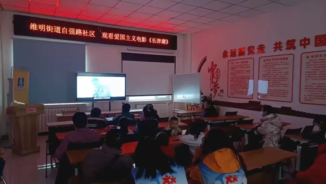 维明街道自强路社区精准对接居民需求,特意选择放学时间开展“光影铸魂迎元旦 家国情怀映初心”爱国观影活动,组织居民与青少年共同观看经典爱国影片《长津湖之水门桥》。大家全神贯注沉浸剧情,被影片中战士们无畏牺牲的精神深深打动。