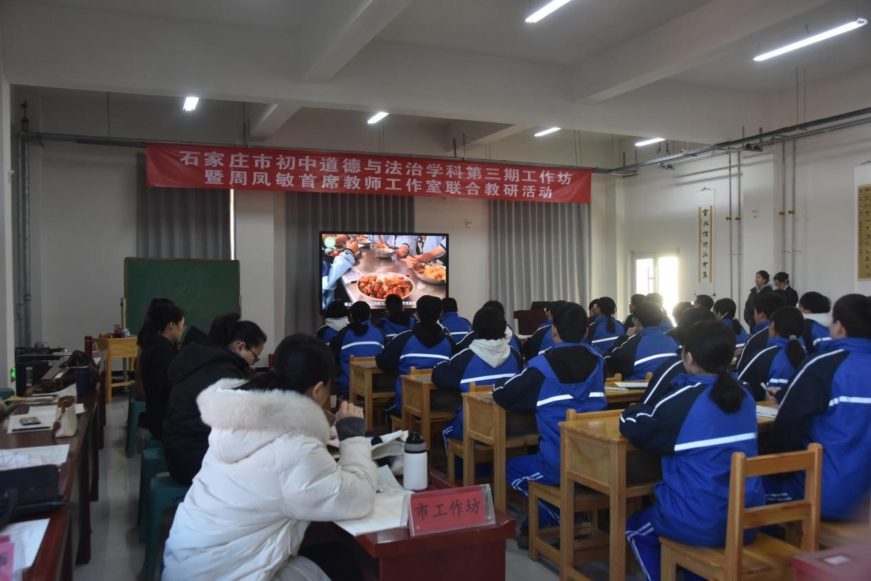 12月25日上午,石家庄市初中道德与法治学科第三期工作坊暨周凤敏首席教师工作室联合教研活动在石家庄市井陉矿区贾庄中学圆满举行。全市各县市区80余名一线道法教师与教研人员齐聚一堂,共探育人新路径。