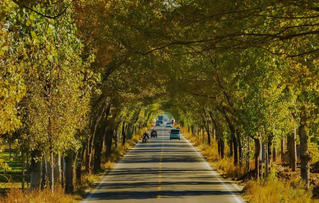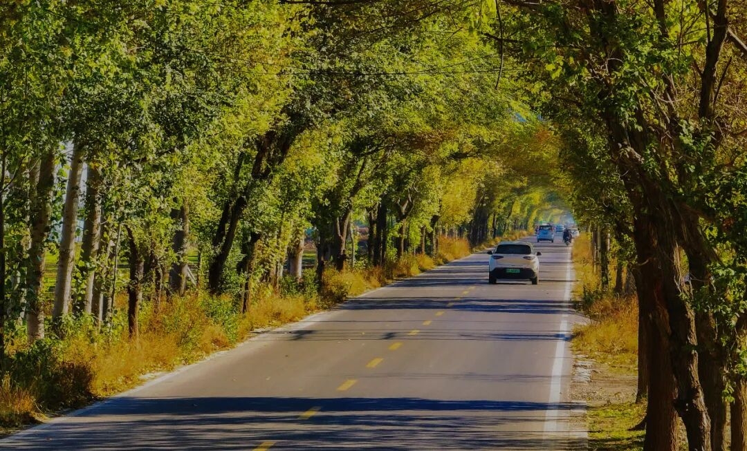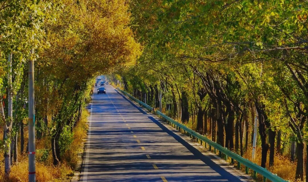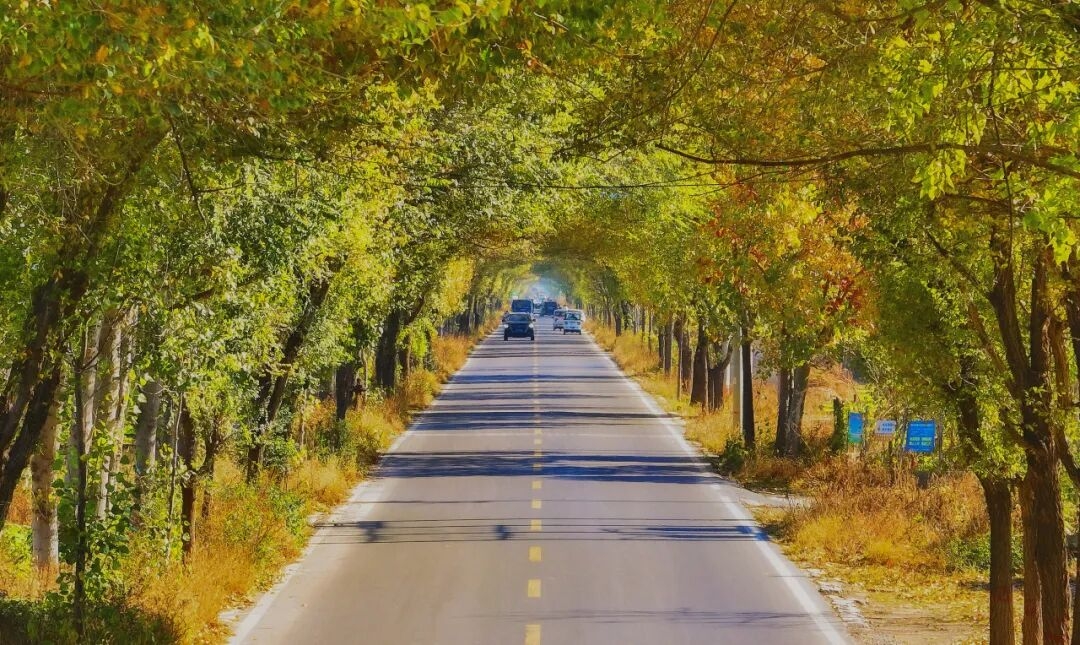 此时,冬初的寒意还未完全驱散秋的温柔,金黄的树叶挂满枝头,又悠悠飘落。开车途经这里,仿佛踏入了一条时光隧道。穿行在这如梦似幻的树洞之中,恍惚间,自己仿佛走进了童话里的浪漫世界,所有的疲惫与烦恼都被这金色的温柔一一抚平。