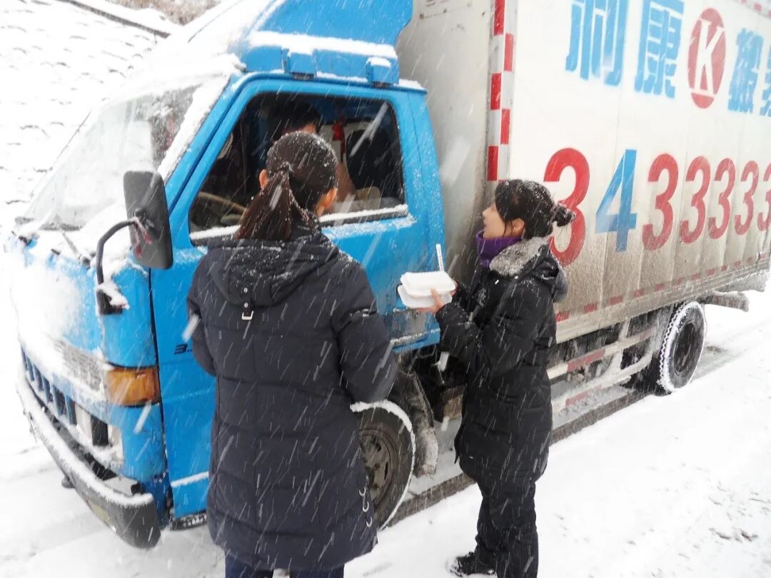 自2002年起,每逢暴雪封路、司乘滞留的危急时刻,井陉服务区都会主动为被困人员免费送上热乎饭菜。(来源:井陉融媒)