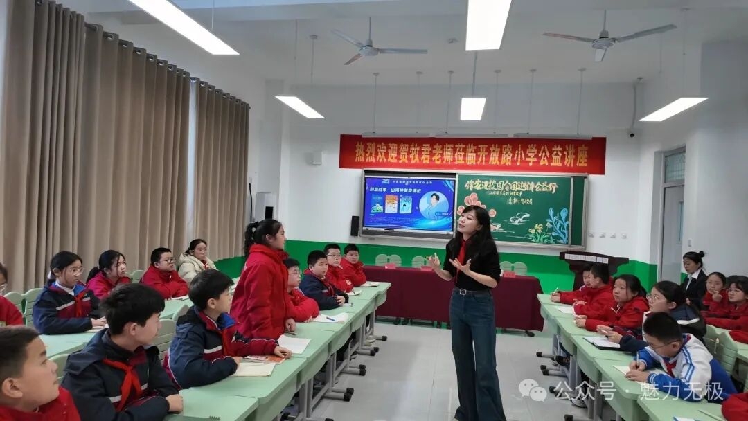 12月16日上午,无极县开放路小学举办“作家进校园”活动。儿童文学作家贺牧君和该校130名师生代表一起徜徉书海,现场交流读书和写作感悟。