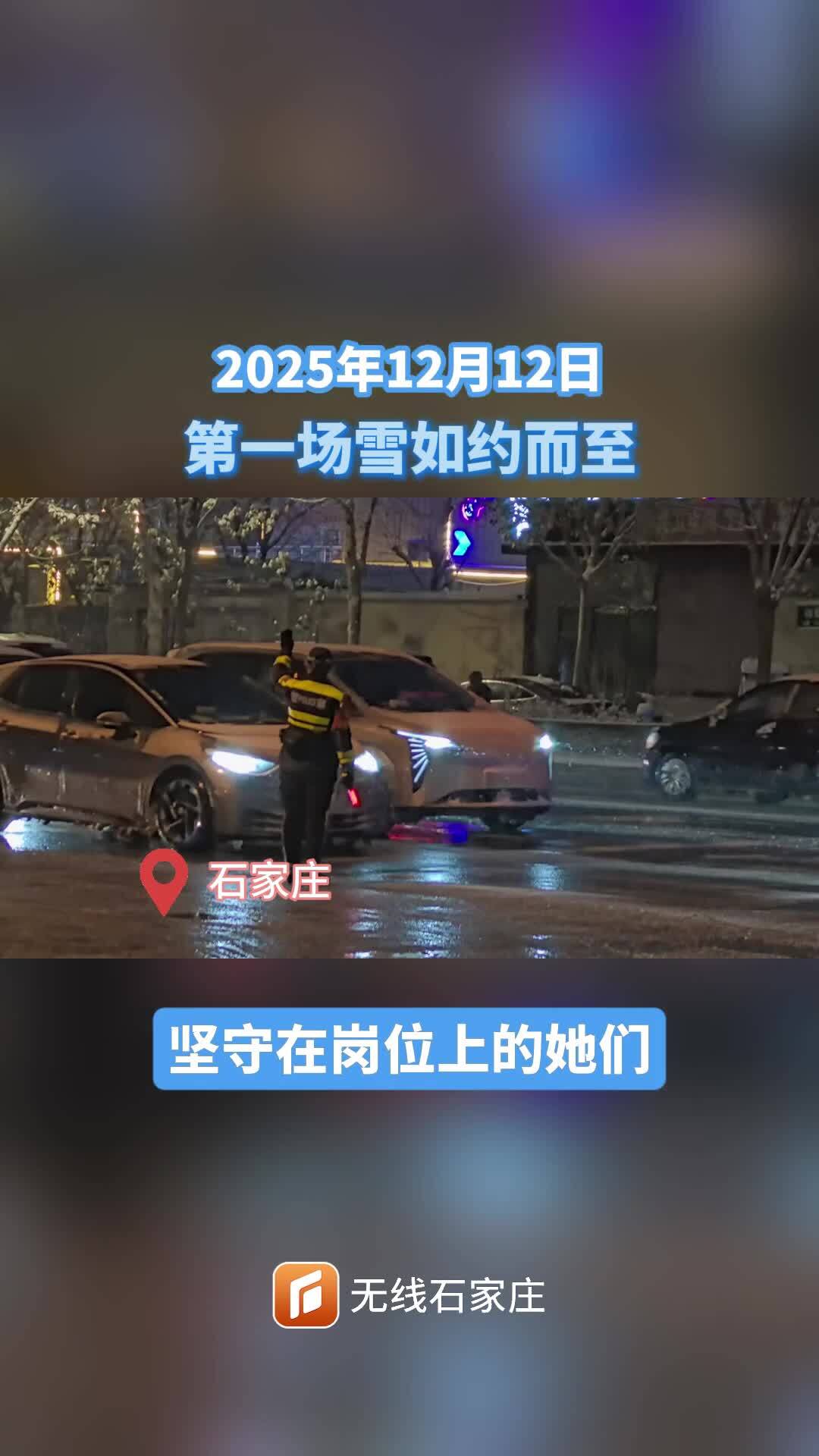石家庄第一场雪如约而至,交警在路上坚守岗位,为行人车辆保驾护航