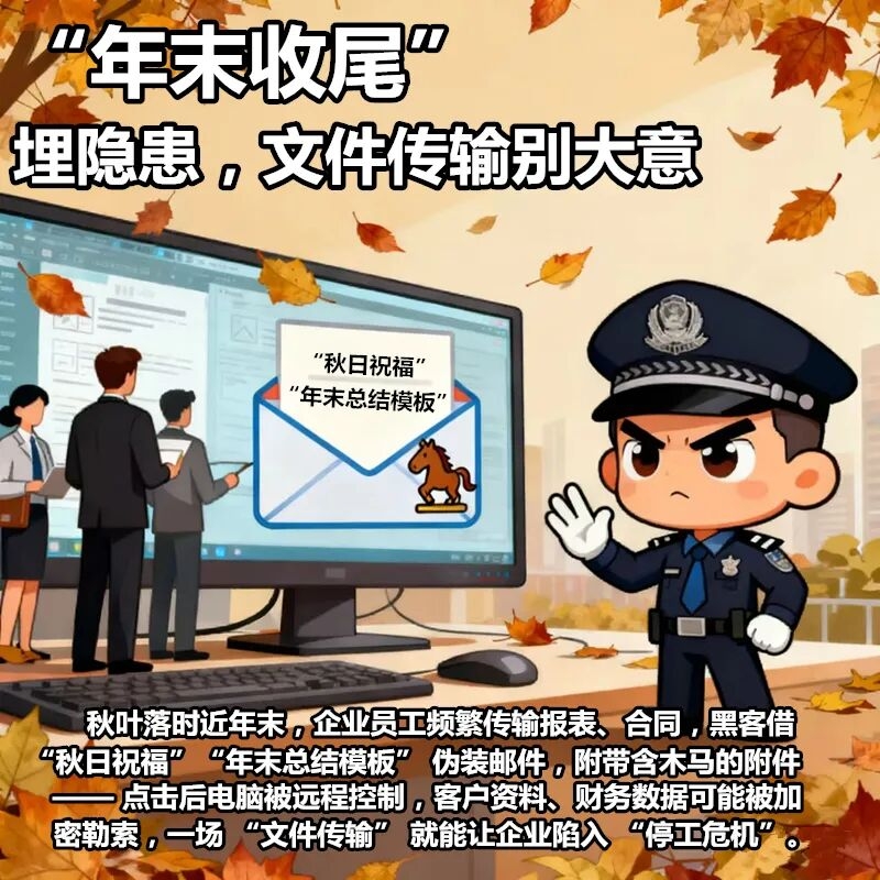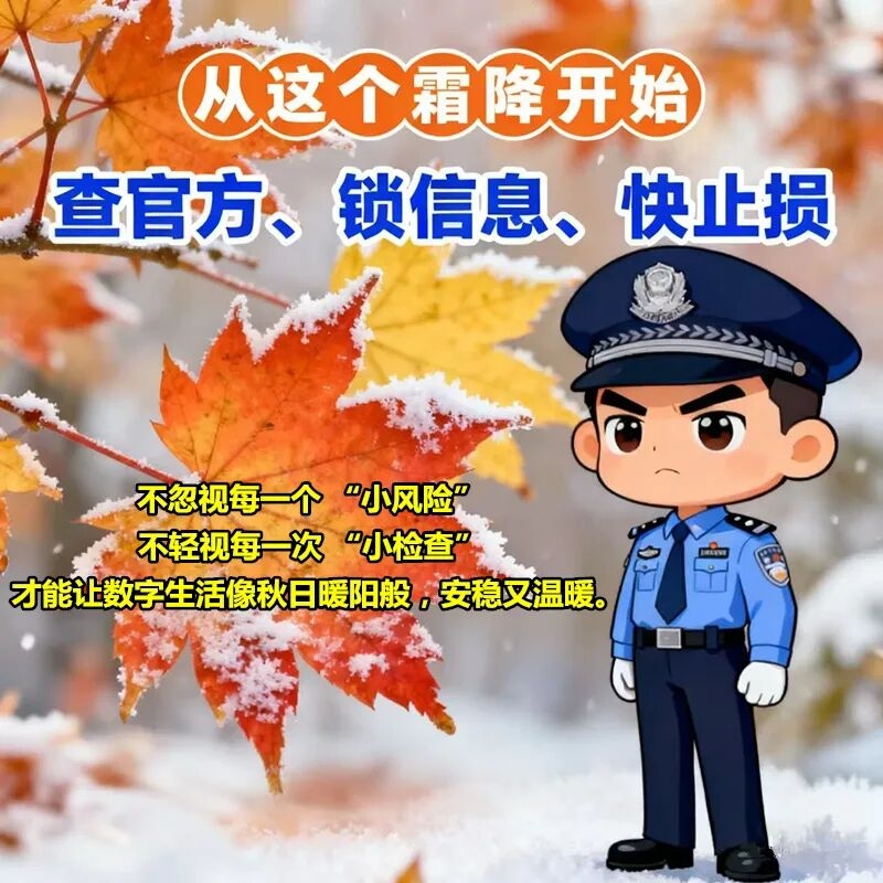霜降不仅是自然的 “降温信号”,更是网络风险的 “高发预警期”:线上囤货、供暖缴费、年末办公等需求集中,不法分子借 “季节场景” 设陷阱,小到个人信息泄露,大到财产损失,网络安全的 “小事”,实则是关乎生活安稳的 “大事”。这份霜降护网提示,帮你守住数字安全的 “温暖防线”。