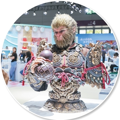 在广东省深圳市举行的第二十一届中国(深圳)国际文化产业博览交易会上展出的《黑神话:悟空》半身像。新华社记者 梁 旭摄