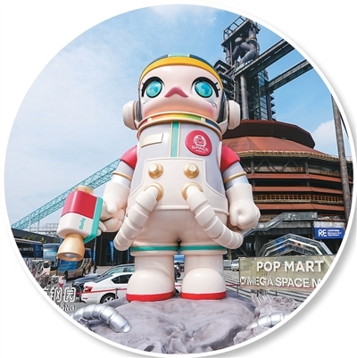 2025年中国国际服务贸易交易会期间,北京首钢园区三高炉外的泡泡玛特主题雕塑。新华社记者 陈晔华摄