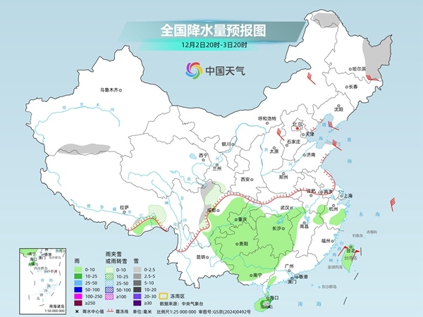 明后天,华南地区低空有南风输送水汽,会导致小范围降雨。此外,12月2日,南方降雨将短暂发展增多,出现成片小雨,近期干燥的天气将会有所缓和。