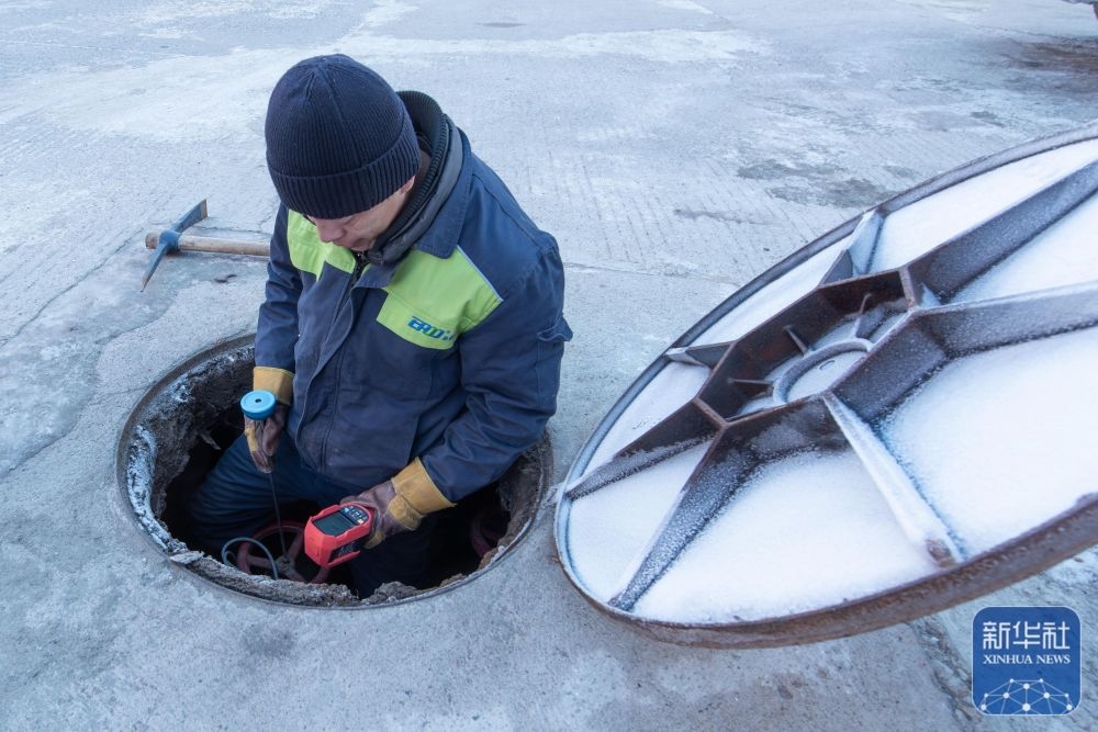 ↑ 12月11日,黑龙江省富锦市一家供热企业的工作人员在巡护供热网络。新华社发(曲玉宝摄)