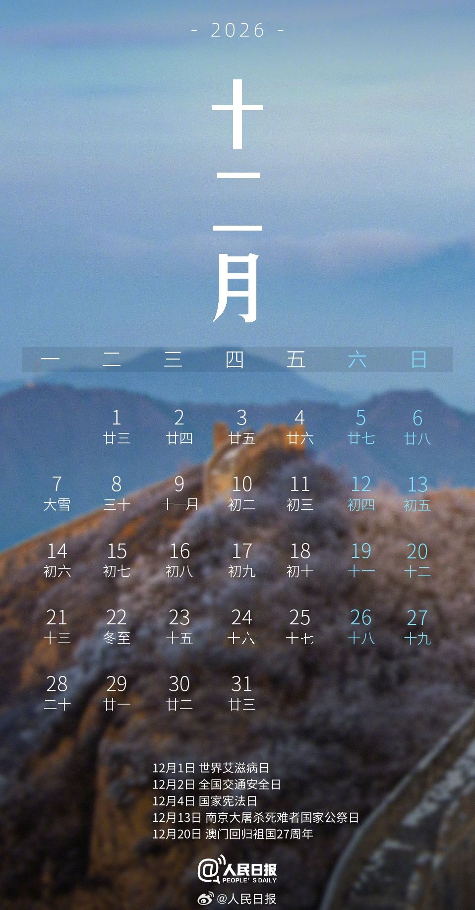 2025已近尾声,明年的月历你提前准备起来了吗?有什么规划?假日、节日、节气、纪念日……一组月历助你规划2026,能当壁纸使用!
