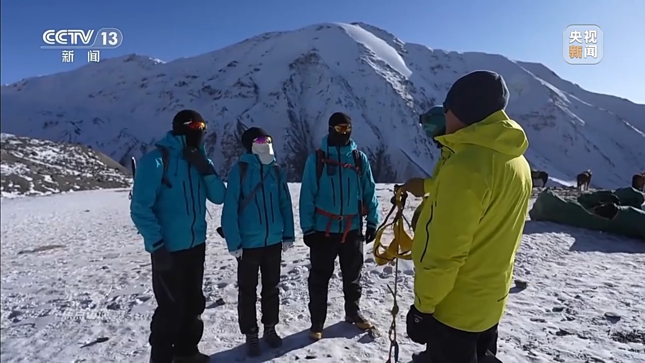 在海拔4000多米的岗什卡雪峰大本营,专业的登山向导正在带领登山爱好者进行适应性训练。这些向导中许多都曾是当地的牧民,“00后”的马文威就是其中一员。