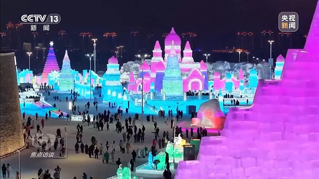这两天,备受关注的哈尔滨冰雪大世界开园,首日客流就达到了4.5万人次。今年的冰雪大世界以“冰天雪地 童话世界”为主题,面积达120万平方米,总用冰用雪量达40万立方米,规模为历届之最。占园区“C位”的主塔“冰灯启梦”是单体最大的冰建景观,它以雪花托举的“山”字为意象,生动呼应了“冰天雪地也是金山银山”的理念。