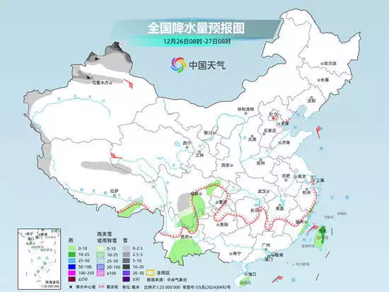明天,新疆北疆北部和沿天山地区、西藏东南部、四川中部等地部分地区有小雪或雨夹雪,其中,西藏东南部、川西高原南部等地部分地区有中雪。西藏东南部、贵州西部、云南南部、海南岛中部、台湾岛等地部分地区有小雨,其中,台湾岛东部部分地区有中雨。