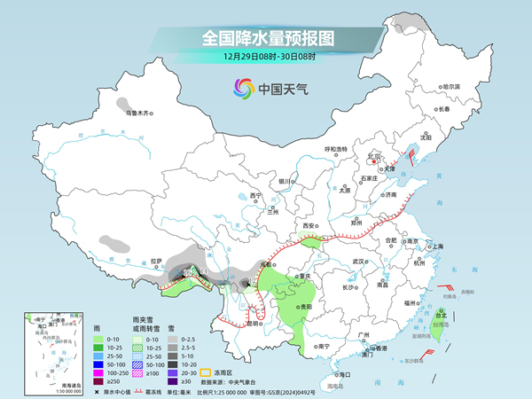 预计30日夜间开始,随着暖湿气流增强,西藏东部、四川、贵州、重庆、陕西南部、湖北西部等地降水又会发展增多。之后,水汽继续向东、向北输送,黄河以南地区将出现一轮“跨年”降水。目前来看这轮降水范围广,但强度不大,多是小到中雨雪量级。公众需密切关注临近预报,做好相关防范措施。