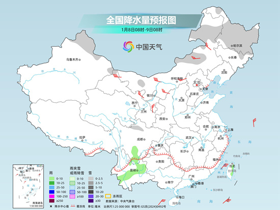 昨天,我国大部雨雪稀少,东北地区出现分散性弱降水。监测显示,7日8时至8日6时,黑龙江中东部、吉林中东部等地出现小到中雪或雨夹雪。