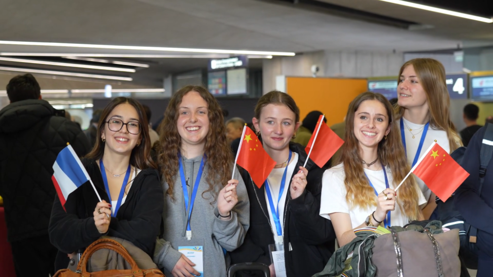 2025年4月4日,13名来自法国亚眠的高中生在巴黎戴高乐机场候机,准备前往中国大连交流学习。新华社记者 孙鑫晶 摄