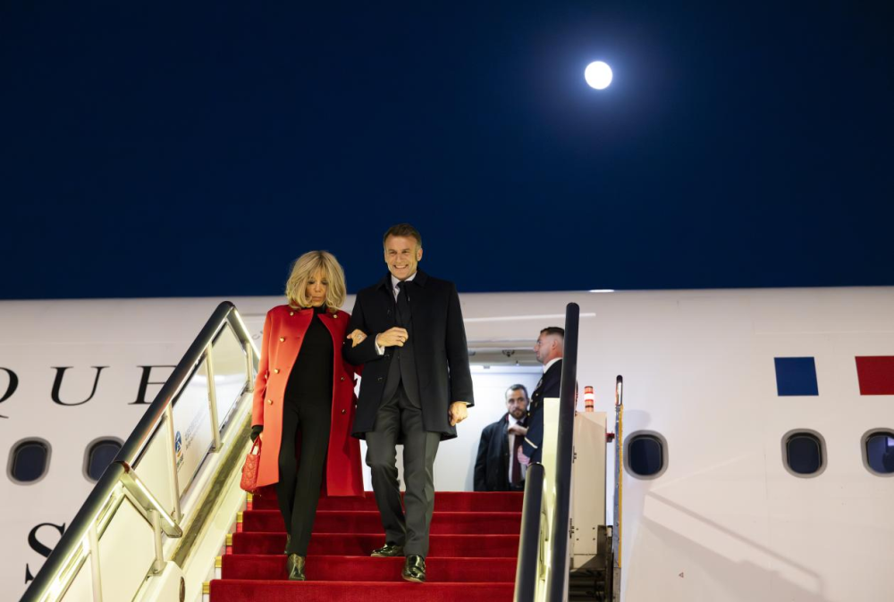 应国家主席习近平邀请,法国总统马克龙12月3日抵达北京,开始对中国进行为期三天的国事访问。新华社记者 才扬 摄
