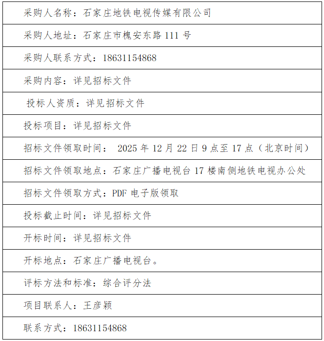 石家庄地铁电视传媒有限公司2026年广告资源招标公告
