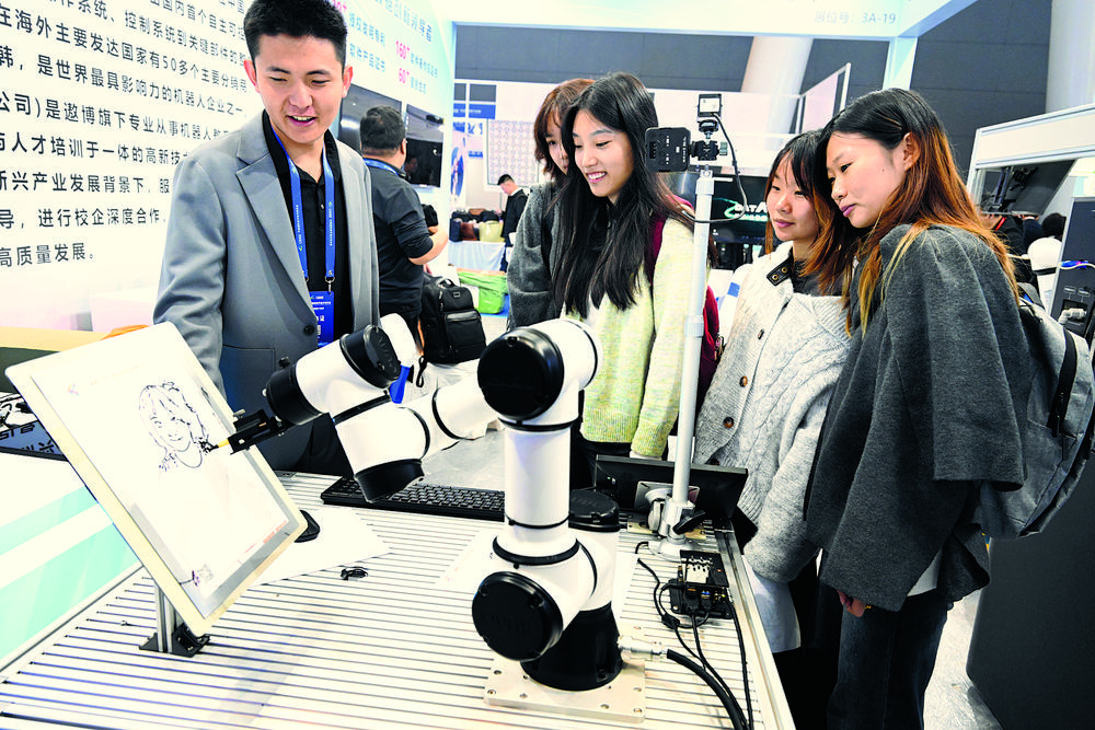 智能绘画机器人吸引了参观者好奇的目光。记者 张 震 摄
