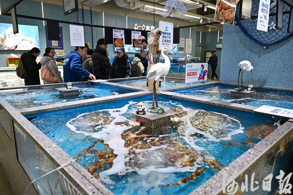 12月21日,石家庄勒泰中心负一层的盒马鲜生门店内,顾客络绎不绝。海鲜区前,顾客李丽微挑选了几只鲜活的梭子蟹,交由工作人员加工。“开业后我每周都来,线上也常下单。”她说,这里的海鲜不仅新鲜,还能根据自己意愿蒸煮,真是太方便了。