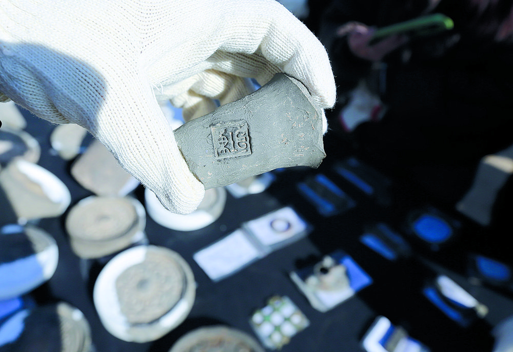 “真定长乐”文字瓦当。燕赵晚报记者 王建国 摄
