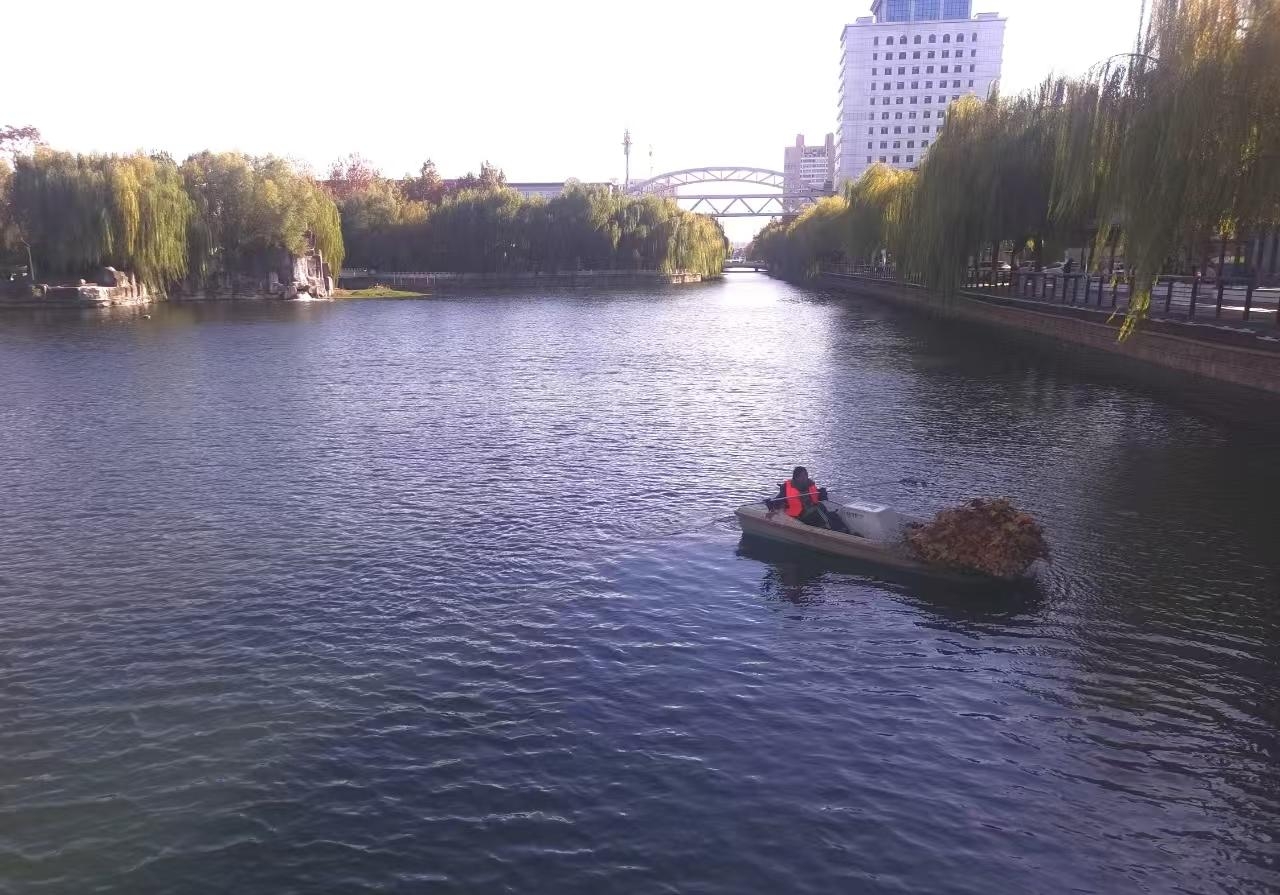 冬季落叶与漂浮物增多,对河面保洁提出更高要求。该中心共安排120名管护工人,优先保障东线万达广场段、西线湖心岛、西清公园等市民活动集中、景观展示性强的河段清洁。在西线湖心岛旁,记者看到管护工人正打捞落叶等漂浮物,从现场人员口中了解到,每天的打捞物都要做到装袋收纳、日产日清。据统计,全年累计打捞漂浮物约9810立方米,水面洁净度得到有效维护。