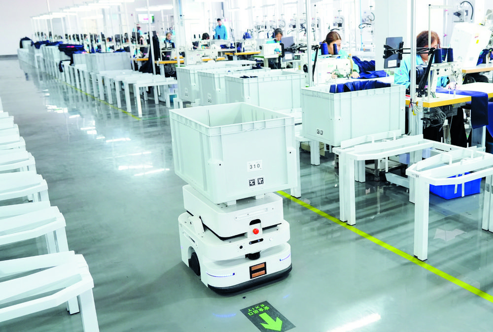 图为际华三五零二职业装有限公司无人衣料运送车。石家庄日报首席记者 张 震 摄