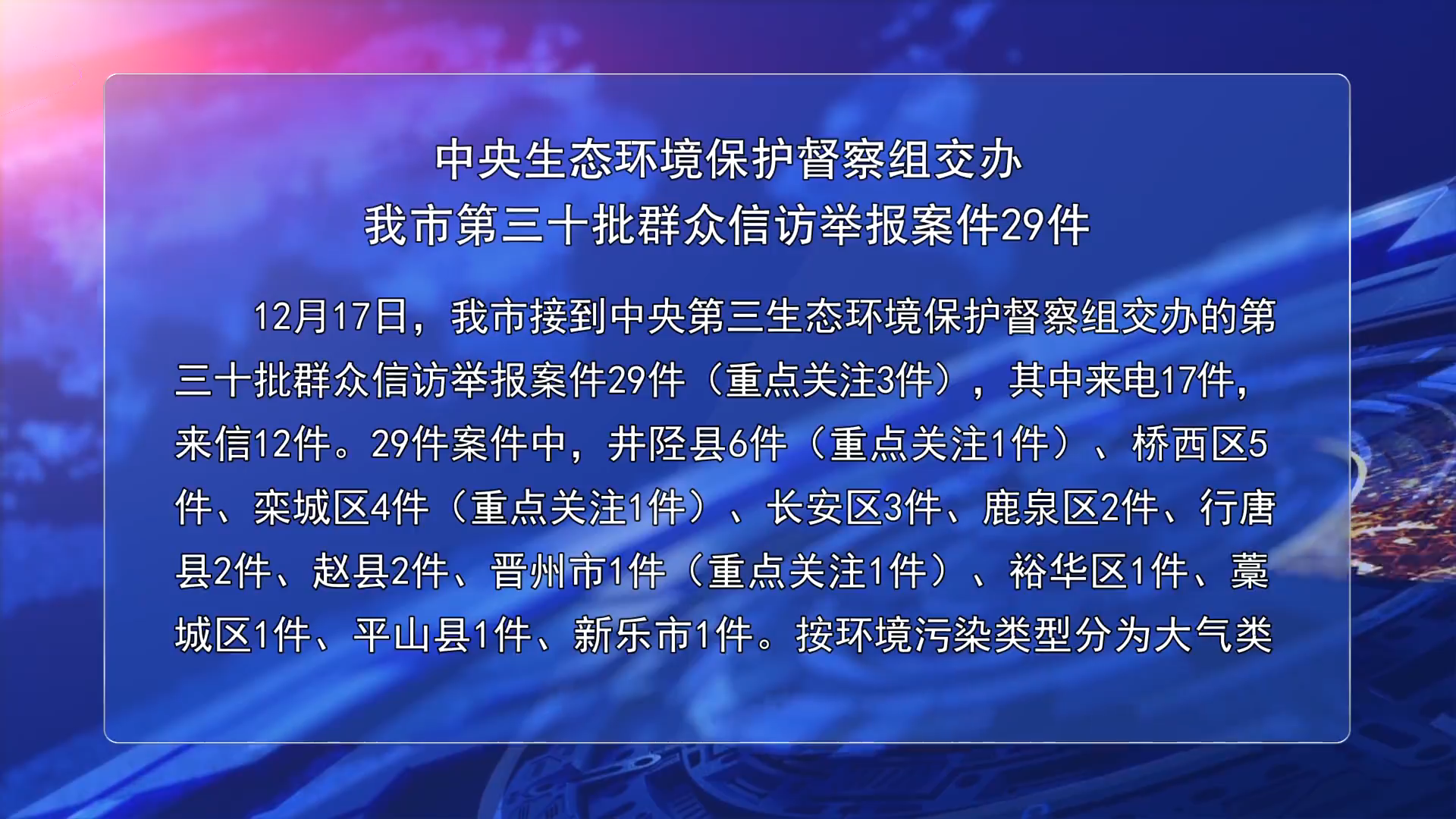 中央生态环境保护督察在河北丨中央生态环境保护督察组交办我市第三十批群众信访举报案件29件