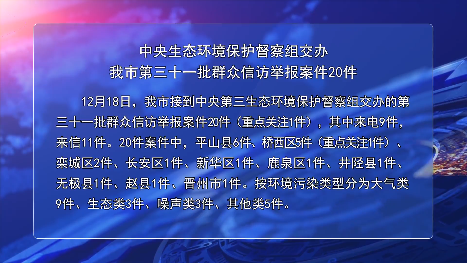 中央生态环境保护督察在河北丨中央生态环境保护督察组交办我市第三十一批群众信访举报案件20件