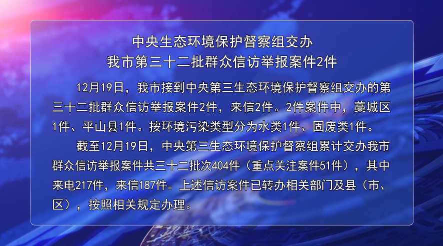 中央生态环境保护督察在河北|中央生态环境保护督察组交办我市第三十二批群众信访举报案件2件