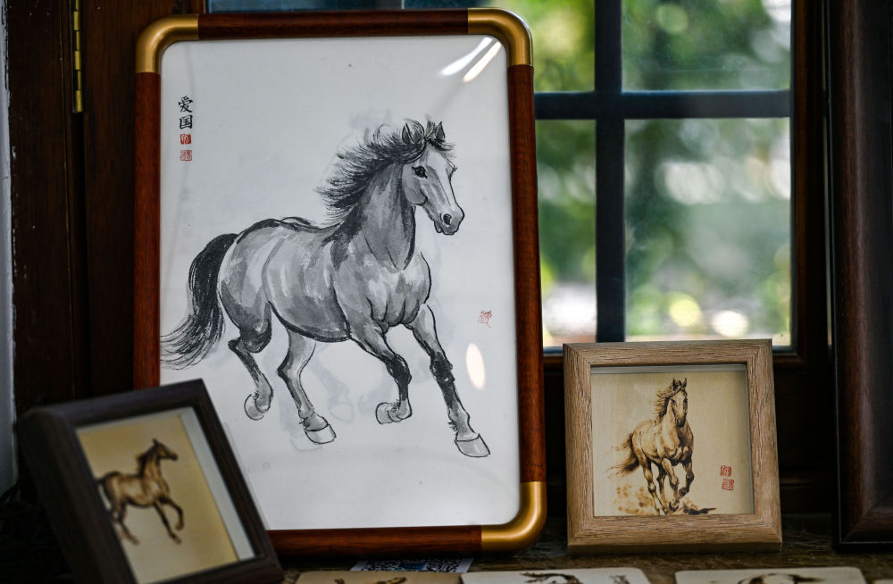 ↑ 这是12月29日在天津古文化街“喜迎马年,五代画马人马画艺术展”上拍摄的画作。新华社记者 赵子硕 摄