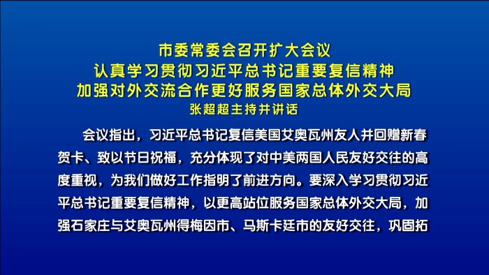 石家庄市委常委会召开扩大会议 张超超主持并讲话