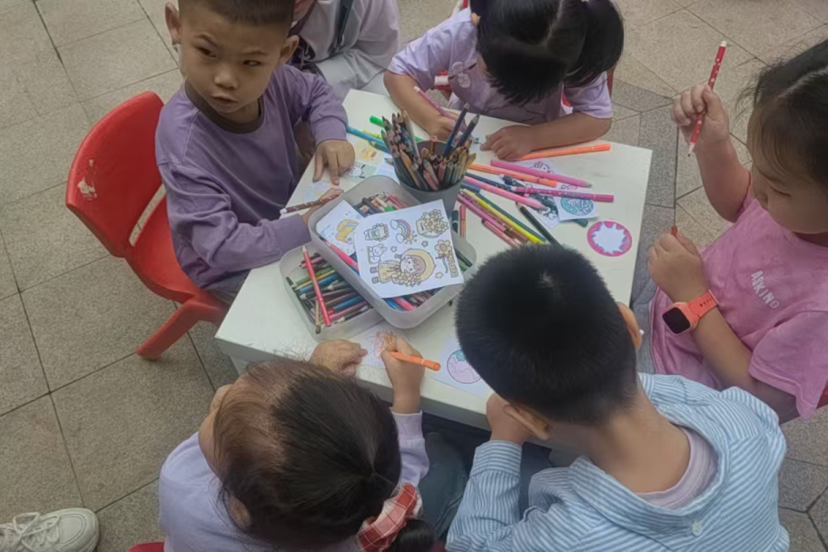 在绘画体验区里,孩子们围绕“国庆”主题自由创作,有的勾勒鲜艳的五星红旗,有的描绘雄伟的天安门,有的画出祖国的壮丽山河。在家长的陪伴和专业老师耐心指导下,孩子们完成的画作被一一陈列在专属展区,形成了一道充满童趣的国庆风景。