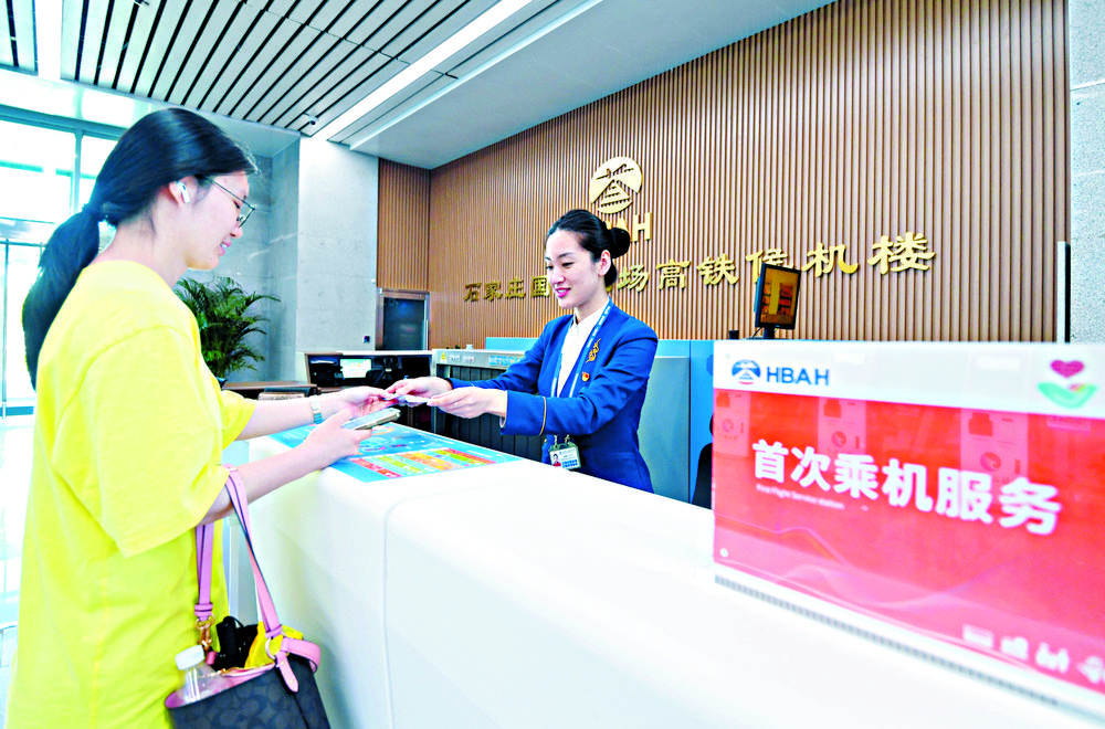 石家庄正定国际机场高铁候机楼提供值机、行李托运、火车票自助取票等一站式服务。如今,京津冀“空铁联运网”持续拓展,机场协同效应日趋增强。(资料图片) 记者张晓峰 摄