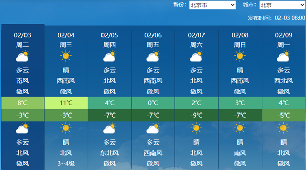 北京未来七天天气预报。(来源:中央气象台)