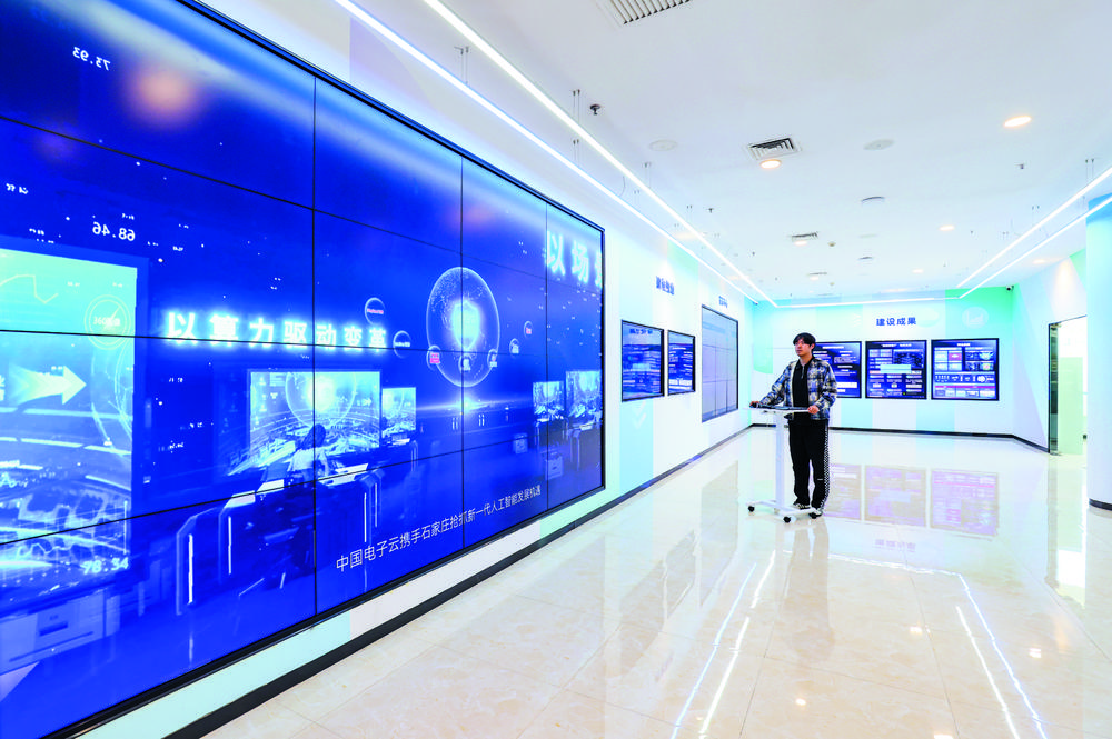 在石家庄人工智能计算中心控制中心,中电智广系统技术有限公司工作人员进行人工智能计算展示。记者 张晓峰 摄