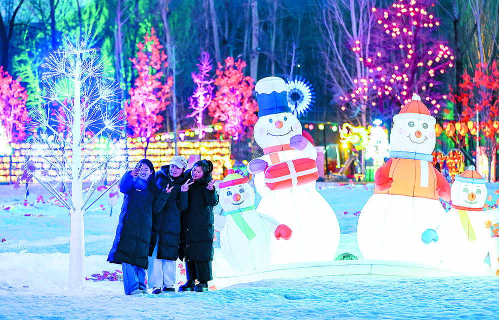 游客在石家庄市灵寿县锦绣大明川赏花灯,喜迎新春佳节。