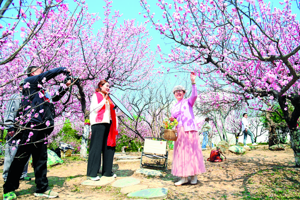 春日里,许多市民走进石家庄市植物园游园赏花、拍照打卡。张 震 摄