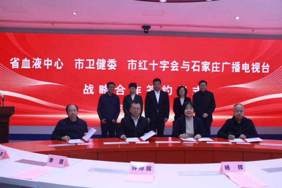 3月6日上午,河北省血液中心、石家庄市卫生健康委员会、石家庄市红十字会与石家庄广播电视台战略合作签约仪式在石家庄广播电视台新媒体中心举行。此次签约,标志着四方秉持 “公益引领、资源共享、跨界融合、互利共赢” 理念,正式迈入深度合作新阶段,将为推动无偿献血与卫生健康事业高质量发展、建设现代化国际化美丽省会城市注入强劲公益动能。