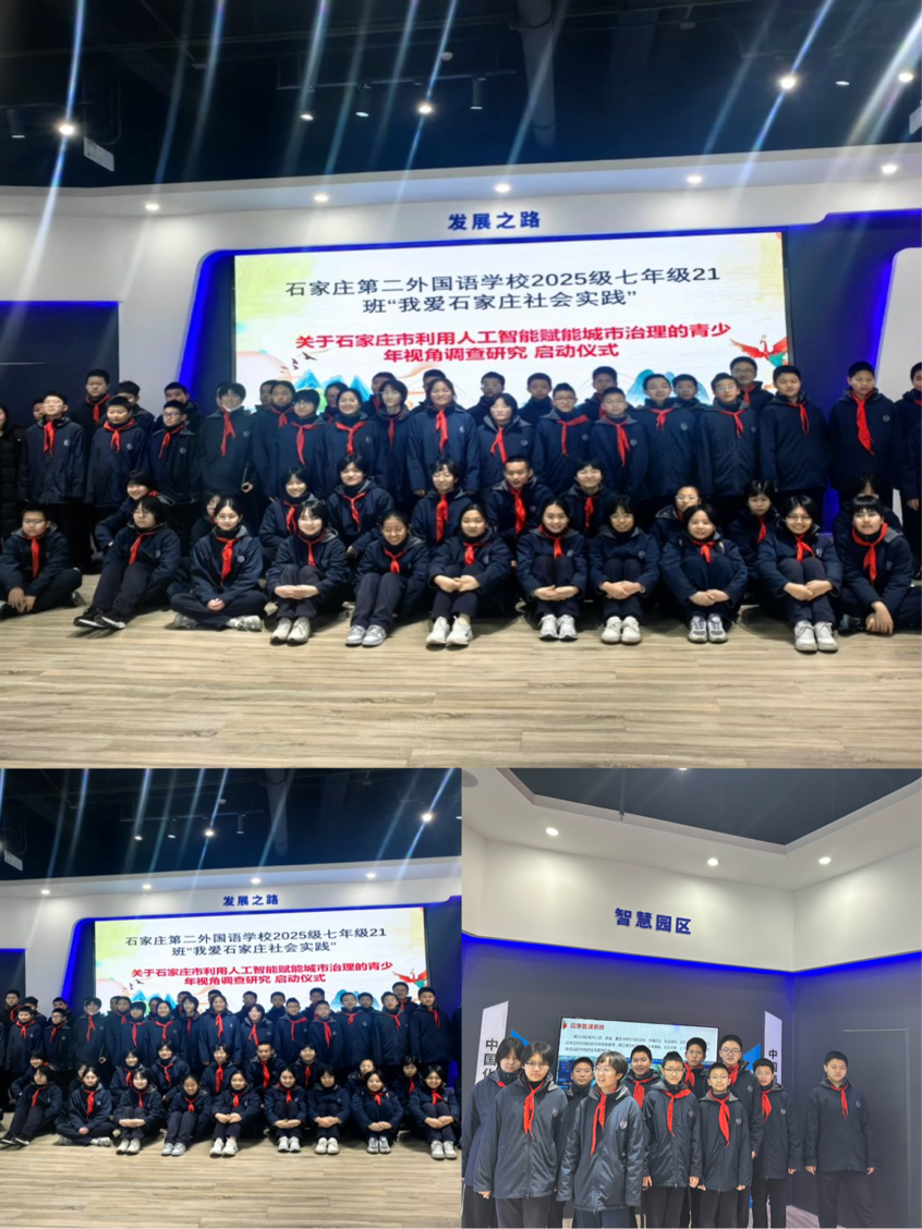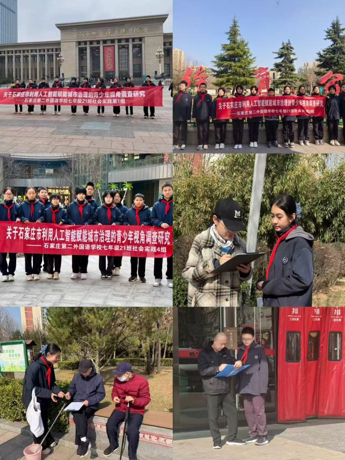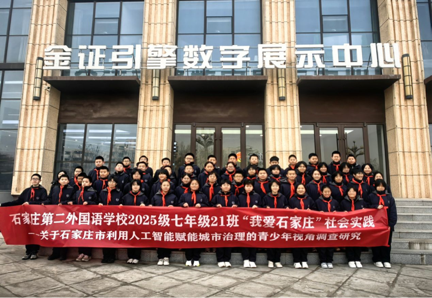 石家庄第二外国语学校2025级七年级21班开展“我爱石家庄”社会实践,围绕AI赋能城市治理,完成“理论研学、实地探访、民意调研”递进式实践活动,以青春视角观察智慧石家庄建设。