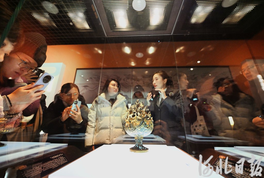 2月6日,观众在天津博物馆近距离观赏来自河北博物院的文物错金铜博山炉。河北日报记者 田明摄