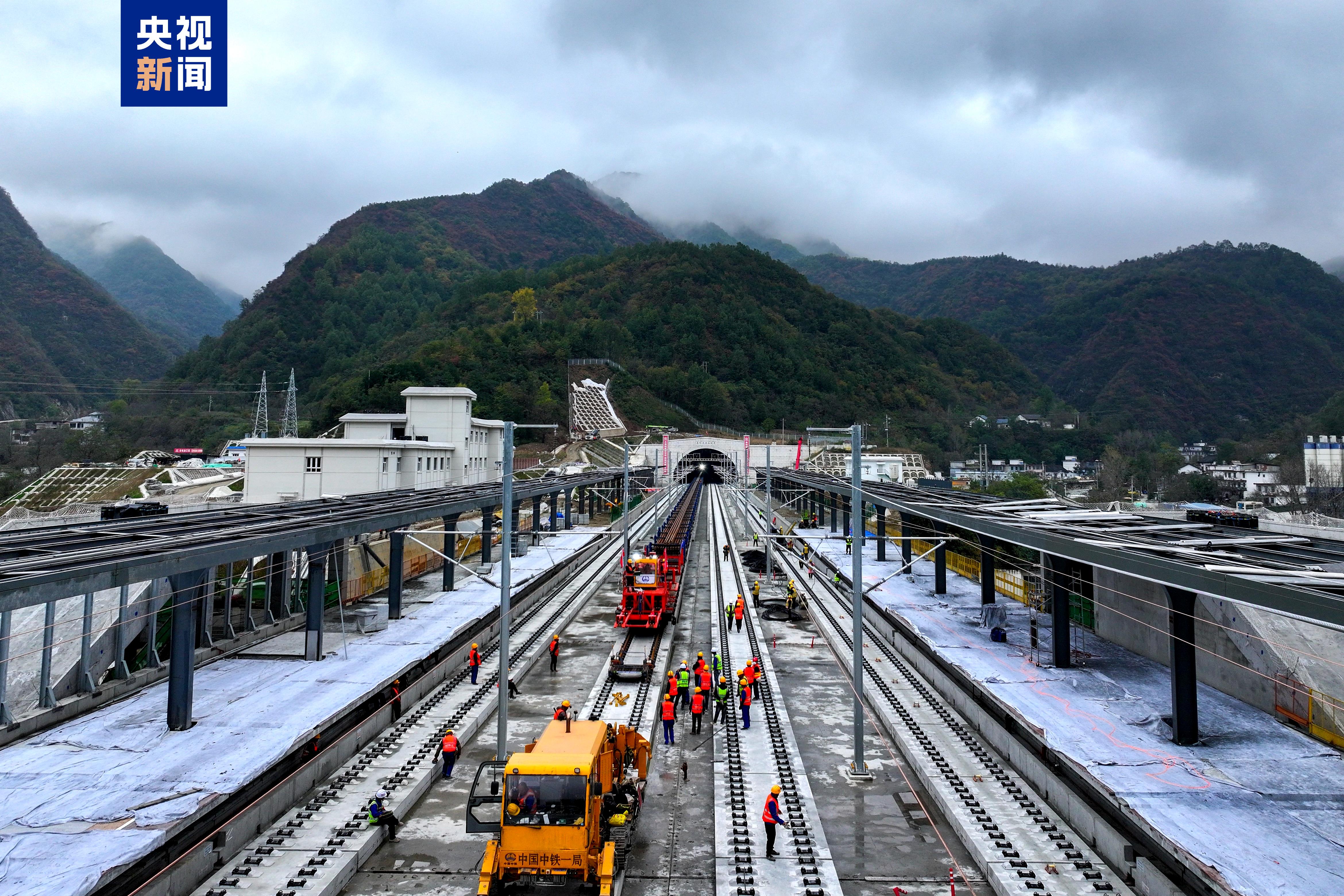 西康高铁穿越秦巴山区,桥隧比高达94%。施工单位需在复杂的地质条件下完成双线全长共341.49公里的钢轨铺设,面临道岔运输难、交叉作业多等严峻挑战。