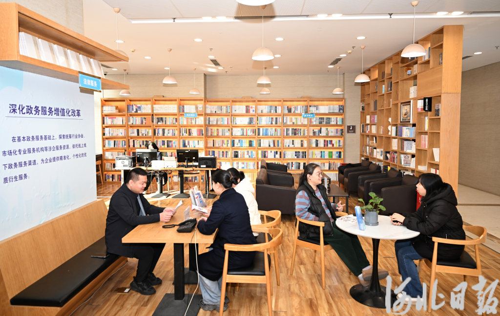 2月12日,河北省政务服务中心企业服务中心工作人员在为企业办事员讲解相关政策。河北日报记者 史晟全摄