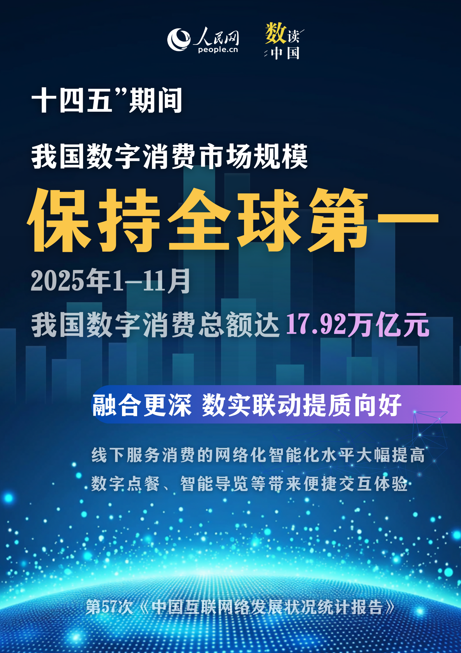 编者按:2025年是“十四五”规划收官之年,也是“十五五”规划谋篇布局之年。“十四五”期间,我国互联网发展持续向“新”而行、朝“好”迈进,数字发展成果惠及更广泛群体,数字经济规模稳步增长,产业数字化转型步伐全面提速,生成式人工智能应用场景向生活、生产领域深度渗透。一起通过6张海报,速览我国互联网事业蓬勃发展。