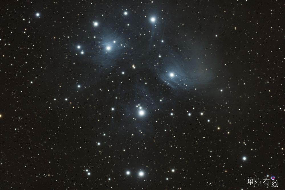 昴星团位于金牛座,整体亮度约为1.6等,在夜空中相当显眼,是肉眼就能辨认出的疏散星团之一,亦是天文爱好者最喜欢观测的深空天体之一。每当天空晴朗、光污染较小时,它就像一小团淡蓝色的星点,安静地悬挂在夜空中。