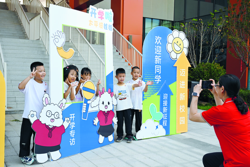 ▲新投用的石家庄外国语学校太平河东校区迎来了新同学。首席记者 张 震 摄